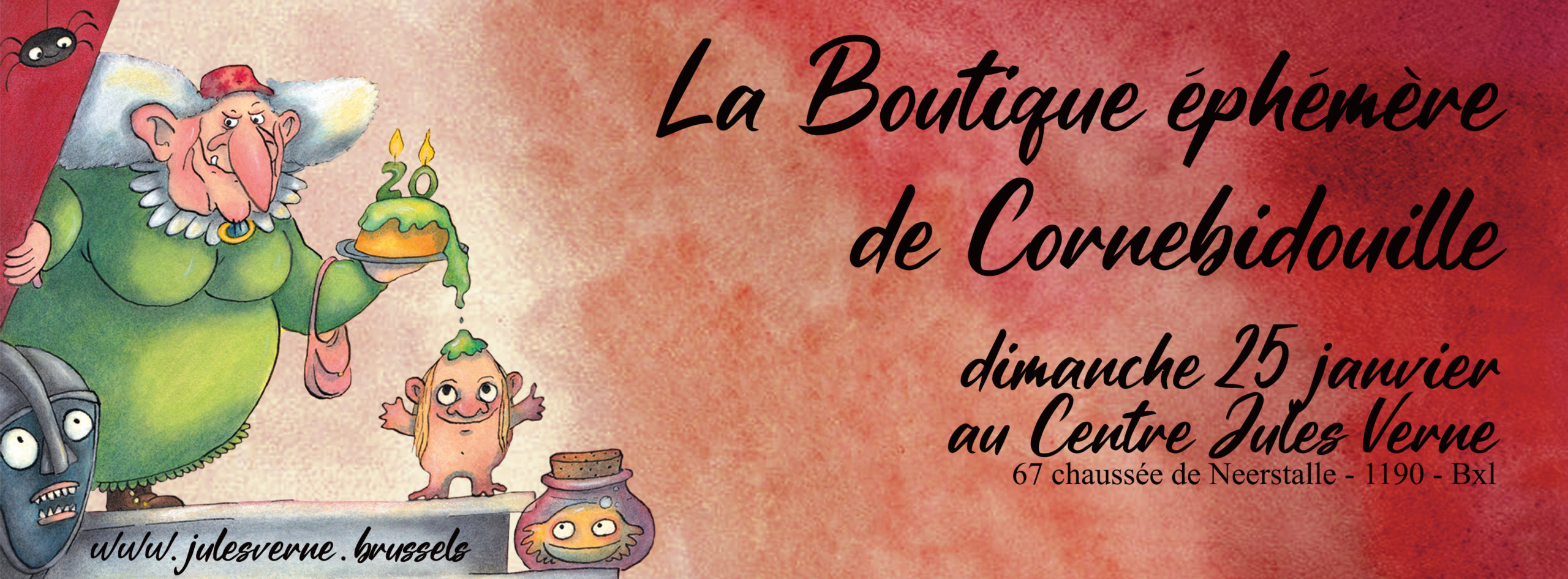 Ter gelegenheid van de Forest Book Fair zal het Jules Verne Centrum een pop-upwinkel aanbieden gewijd aan Cornebidouille. Je vindt er alle albums van de beroemde heks, maar ook originelen van de kunstenaar Magali Bonniol, spelletjes en vele andere verrassingen. 1 Cornebidouille-masker aangeboden bij elke aankoop van een Cornebidouille-boek of -spel. Gratis toegang.